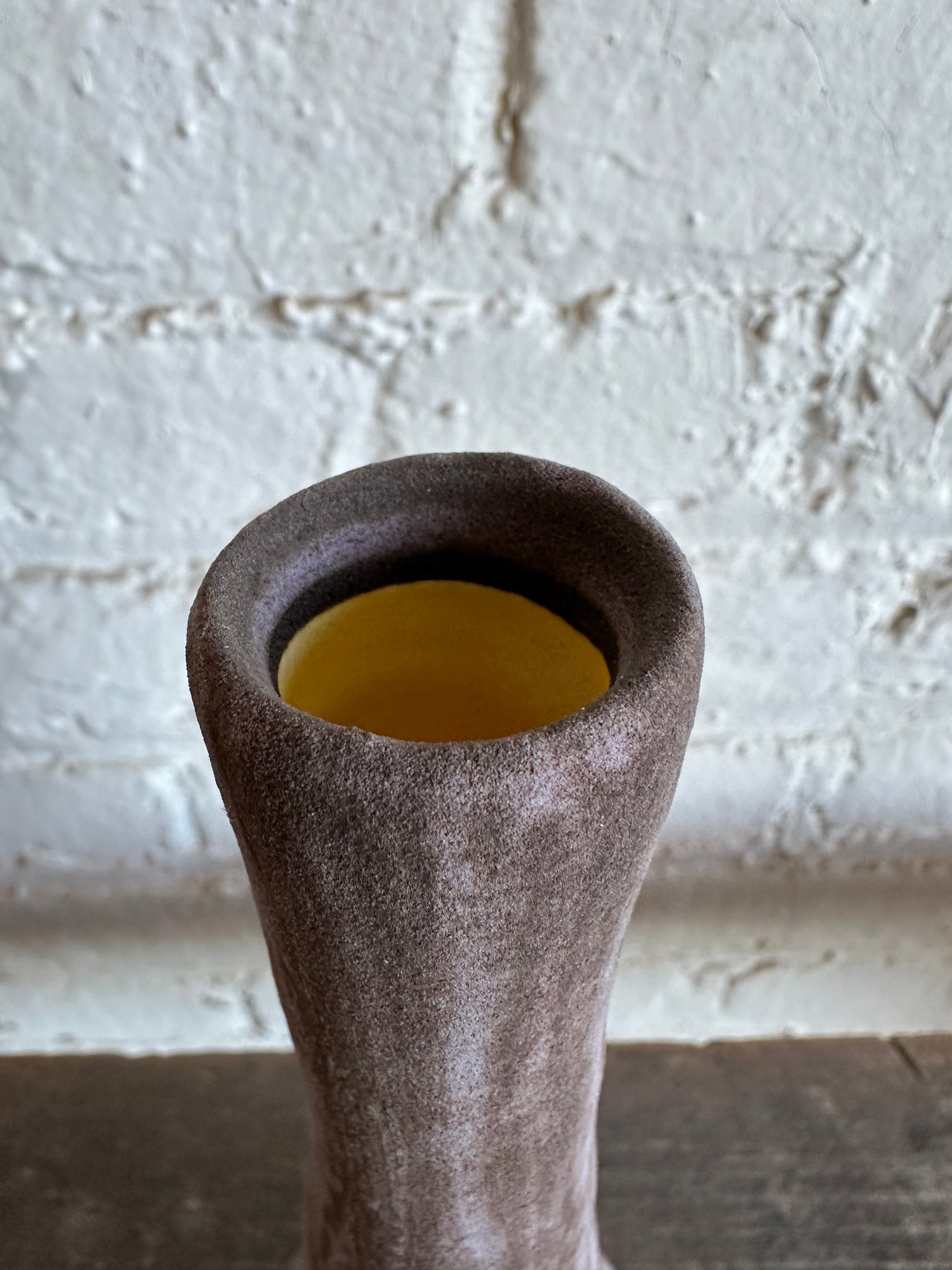 Violet & brown streak ultra suede dry matte exterior, yellow fizz gloss interior